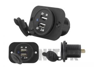 | Ładowarka samochodowa uniwersalna USB 12/24V 5V/1A+2,1A, do zabudowy, zamykana |